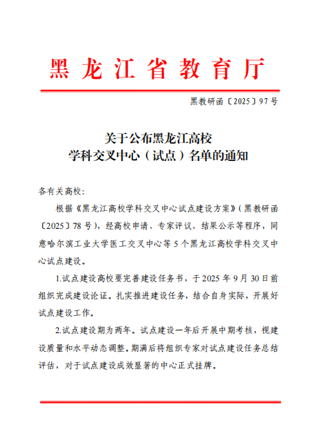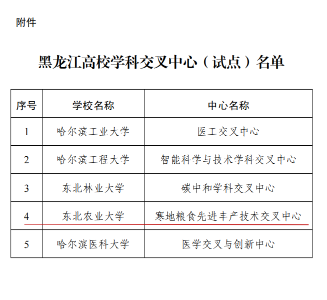 近日,黑龙江省教育厅公布《关于公布黑龙江高校学科交叉中心(试点)名单的通知》(黑教研函〔2025〕97号),我校申报的“寒地粮食先进丰产技术交叉中心”成功获批,成为黑龙江省首批高校学科交叉中心试点之一。该中心的设立是贯彻落实习近平总书记重要讲话重要指示精神的具体举措,旨在通过多学科协同突破寒地粮食生产关键技术,培养复合型拔尖创新人才。