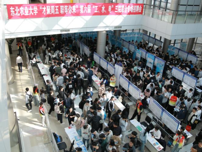 9月19日,由校招生就业处主办,工程学院、水利与土木工程学院以及电气与信息学院三院联合承办的“才聚周五 职等你来”第六届“工、水、电”三院联合专场招聘会在音乐厅阳光大厅举行。校党委副书记孟炎、招生就业处处长潘俊波、副处长吴立龙,工程学院、水利与土木工程学院、电气与信息学院领导班子、全体辅导员、三个学院2026届毕业生共计1500余名学生以及相关学院部分毕业生参加招聘会。