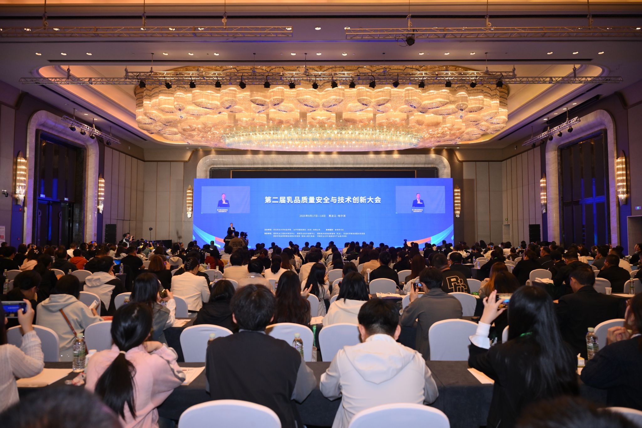 我校副校长姜毓君出席大会并致辞。他指出,当前全球乳业正处于技术革新、消费升级与国际竞争加剧的关键阶段,乳品质量安全直接关系消费者健康和产业可持续发展,因此技术创新至关重要,国务院《关于推进奶业振兴保障乳品质量安全的意见》更是明确提出“2025年实现奶业全面振兴”的战略目标。我校作为最具传承的中国乳业人才摇篮,拥有众多国家级科研平台和高水平研究队伍,长期以来取得了丰硕的成果,并为我国乳品行业高质量发展提供了重要科技和人才支撑。继去年成功举办首届大会之后,本届大会以“质量安全科技创新驱动产业进步”为主题,旨在搭建集技术交流、成果展示与产学研深度融合为一体的高端平台,覆盖全链条质量安全体系,共同探讨乳品行业的最新发展趋势与挑战,汇聚各方智慧、激发创新思维,为乳品行业持续高质量发展贡献更多力量。