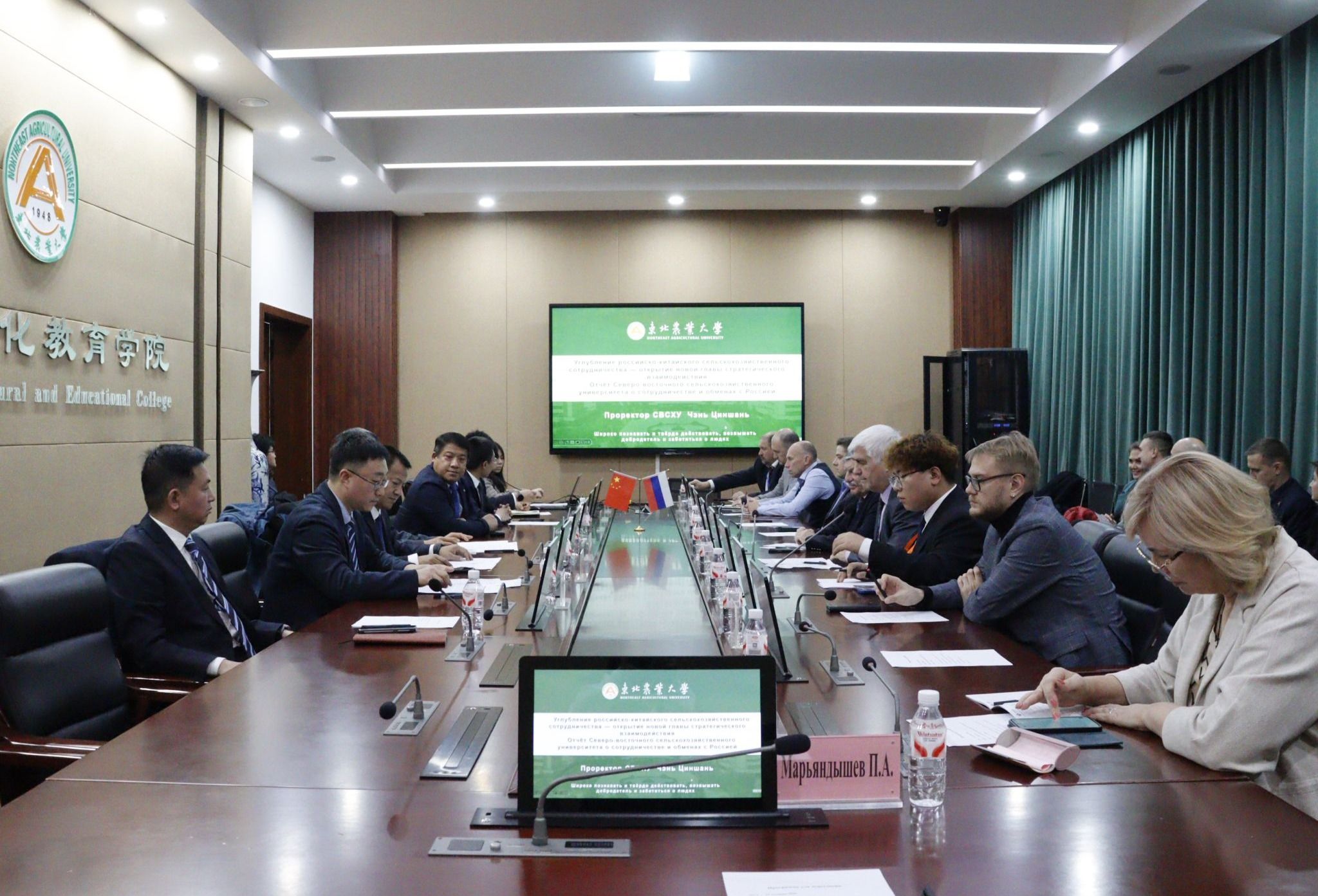 会议期间,陈庆山以“深化中俄农业合作,共促寒地农业高质量发展”为主题发表主旨讲话,介绍了学校的发展历程与办学特色,重点阐述了学校在对俄人才培养、科研合作、人文交流等领域所取得的丰富成果,并表达了期望俄罗斯科工联、俄罗斯科学院支持学校高质量开展对俄农业合作的意愿。