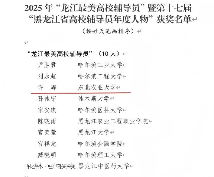 我校辅导员许辉荣获2025年“龙江最美高校辅导员”荣誉称号