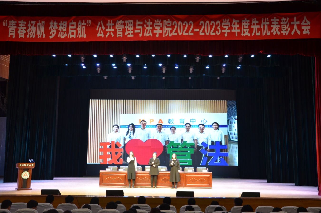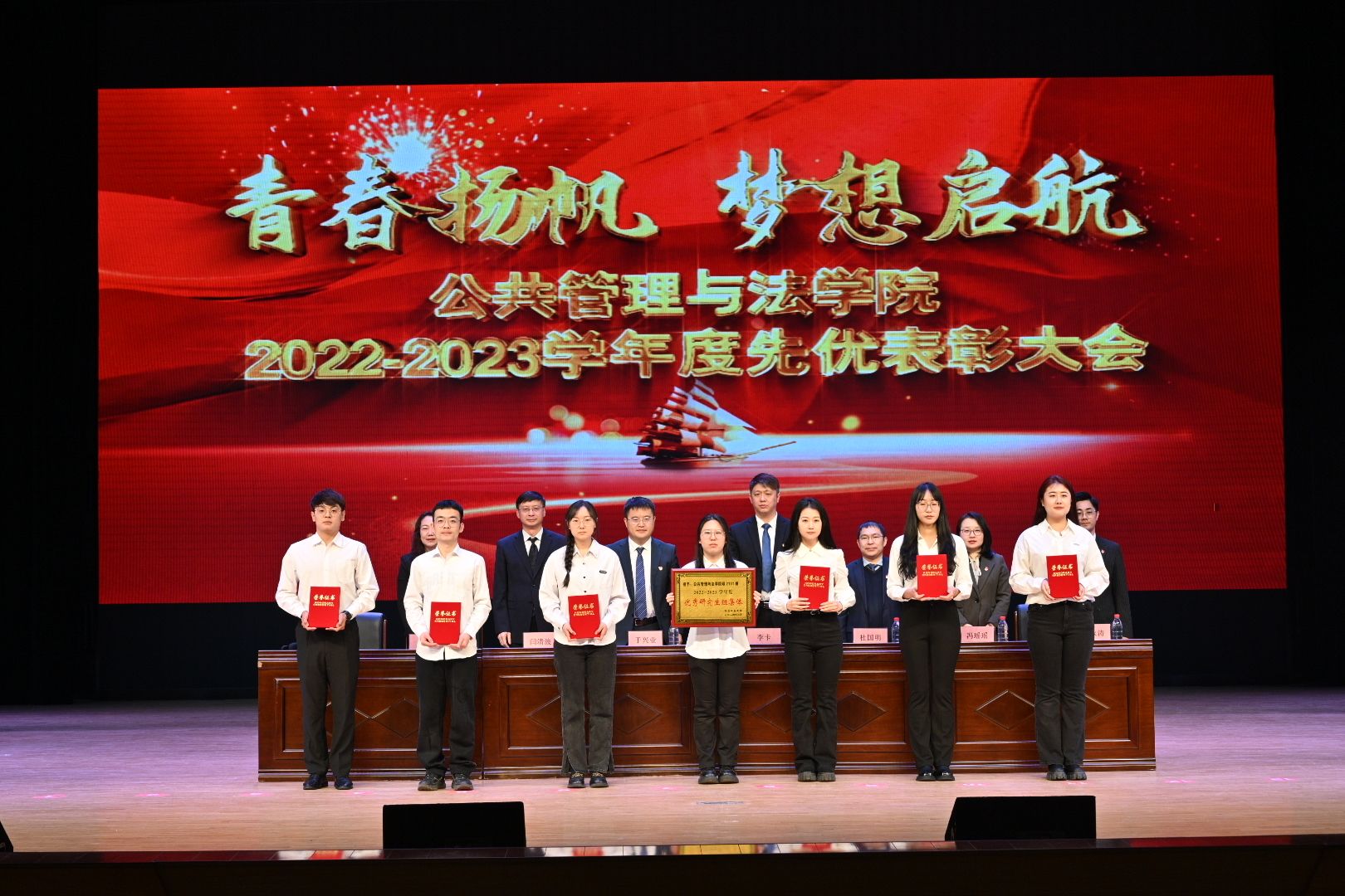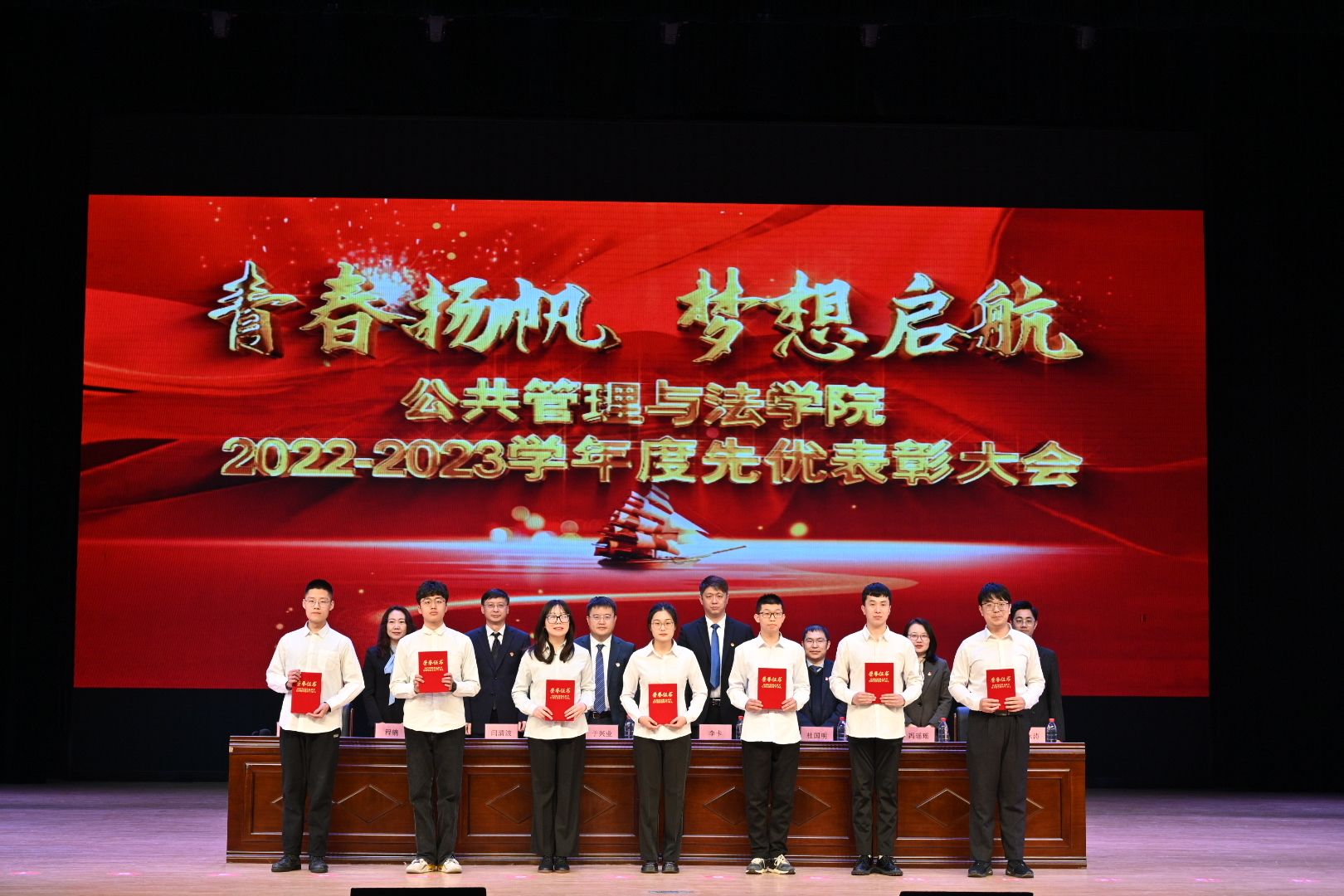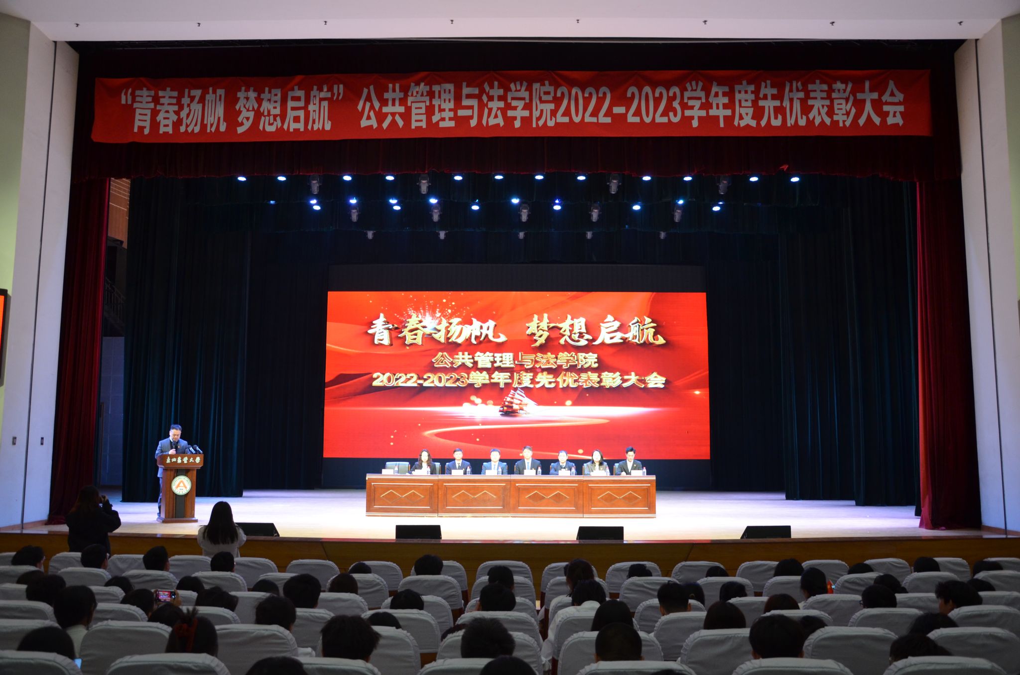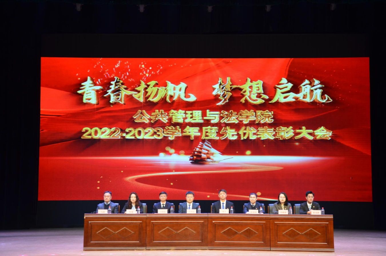 为进一步弘扬优良学风、上好开学第一课、讲好朋辈榜样故事、激发每一名学生当好主人翁、建功新时代的拼搏热情,根据学校“爱校如家 当好主人翁”活动相关工作部署及学院“爱党爱国强信念 爱校如家勇担当”主题教育活动安排,公共管理与法学院“青春扬帆 梦想启航”2022-2023学年度先优表彰大会于3月21日晚18:00在音乐厅隆重举行。学校学生工作部部长于兴业、校团委书记李卡、学院党委书记闫清波、院长杜国明、副院长程镝、全体辅导员以及学院全体学生出席大会。大会由学院党委副书记马涛主持。
