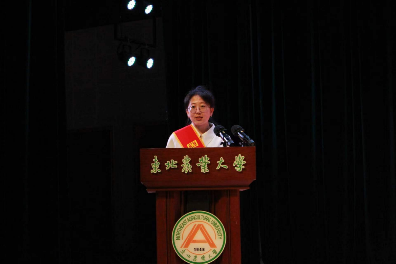 硕管法2104班范晓雨同学代表获奖研究生发言,她表示今后将继续提升自我,深入农村,了解农民,关注农业,用双脚丈量祖国大地,用所学助力农村发展,用知识和智慧服务三农,为国家三农事业贡献青春力量。