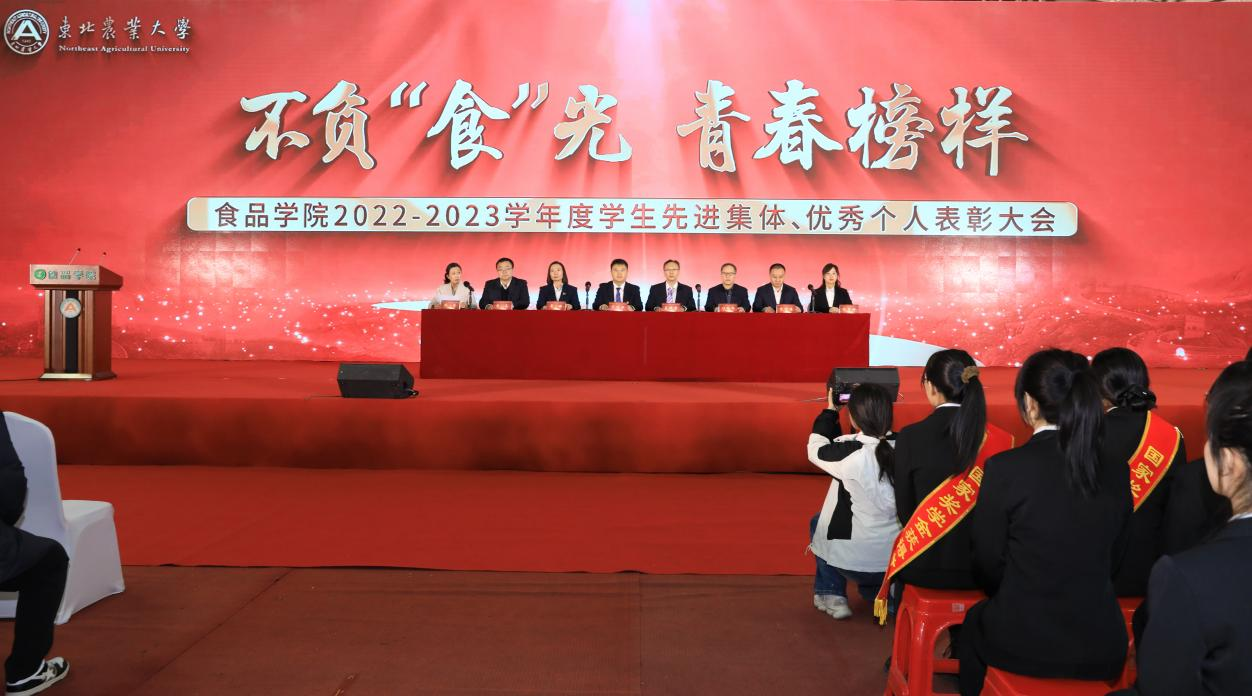 3月22日晚,“不负‘食’光,青春榜样”食品学院2022-2023学年度学生先进集体、优秀个人表彰大会在体育馆隆重举行。校学生工作部部长于兴业,食品学院院长姜毓君,正处级辅导员崔丽,副院长刁铁军、李良,副处级辅导员金靖博、张鑫琳,学院全体辅导员和1600余名学生参加了会议。大会由食品学院党委副书记钱芳主持。