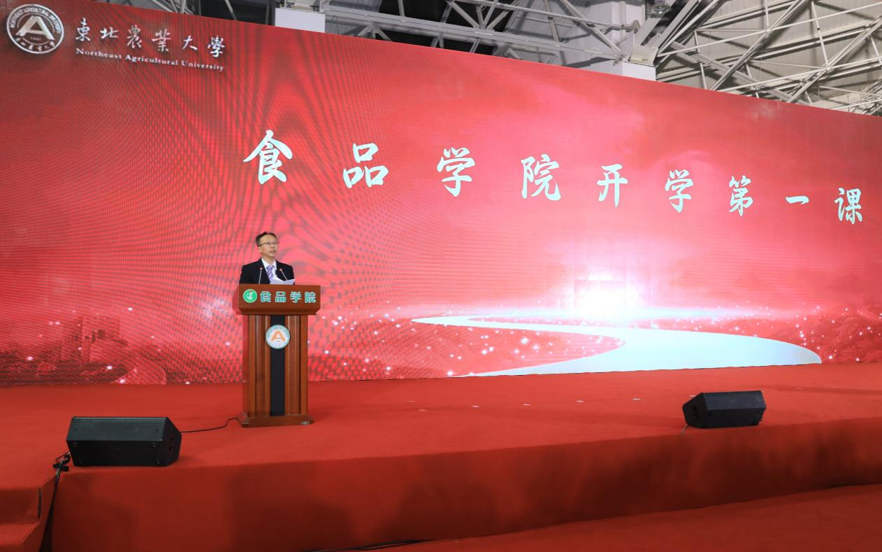 姜毓君向所有受到表彰的先进集体和优秀个人表示热烈的祝贺,向关心食品、支持食品的学工部等有关职能部门表示衷心的感谢,向长期以来辛勤工作、潜心育人的学院教师们表示崇高的敬意。他向同学们介绍了学院过去一年在科学研究、专业建设、育人育才上取得的突出成绩,并对同学们提出三点希望,一是要厚植家国情怀,筑牢如磐信念。传承东农的历史传统与精神内核,铭记抱负与责任,把人生梦想汇入时代洪流。二是要厚培专业本领,弘扬科学家精神。以“爱国、创新、求实、奉献、协同、育人”的新时代科学家精神,拓展学术视野,树立宏伟目标,提升专业本领,共同守护好我们的“饭碗”“餐桌”。三是要厚积实践技能,磨砺坚韧品格。关注国家战略、社会需求和民生需要,秉承艰苦奋斗精神,以实际行动践行社会责任,踔厉奋发谱写东农食品学子新篇章。
