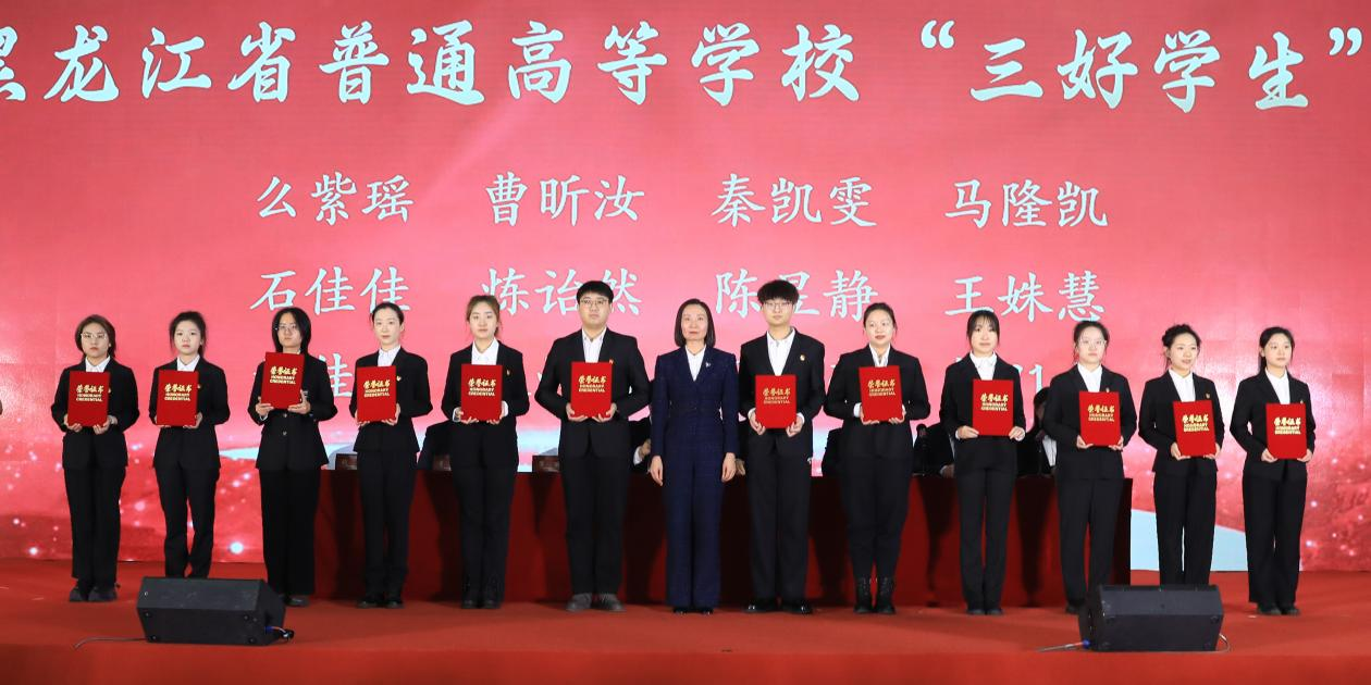 崔丽为黑龙江省普通高等学校“三好学生”(代表)颁奖