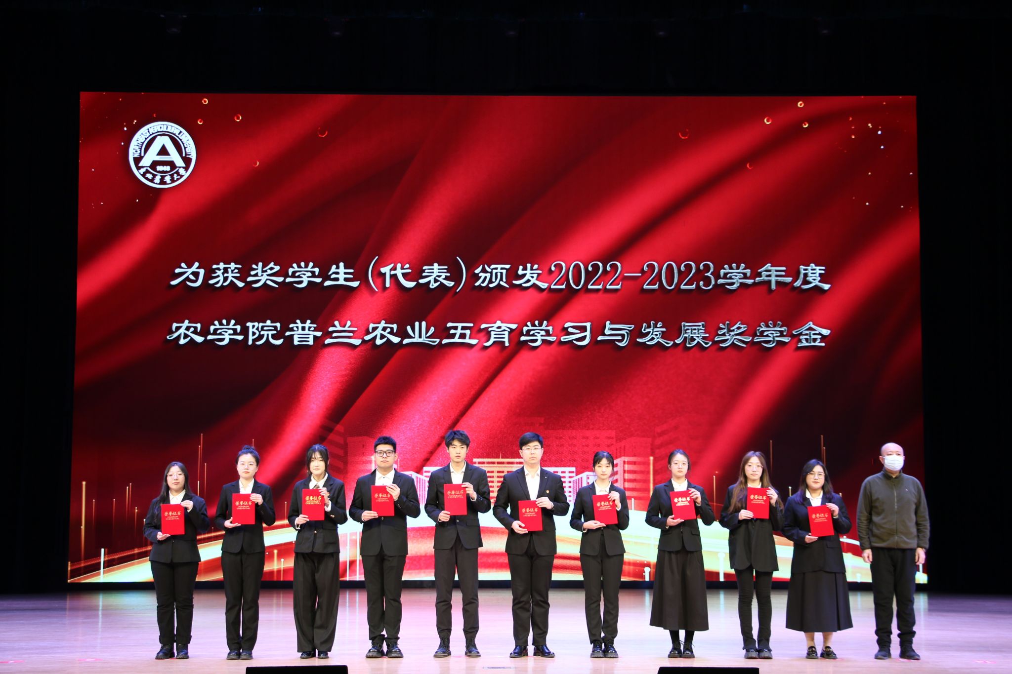 李东宣读《关于表彰2022-2023年度普兰农业五育学习与发展奖学金、奖教金的决定》、《关于表彰大北农励志奖学金的决定》。