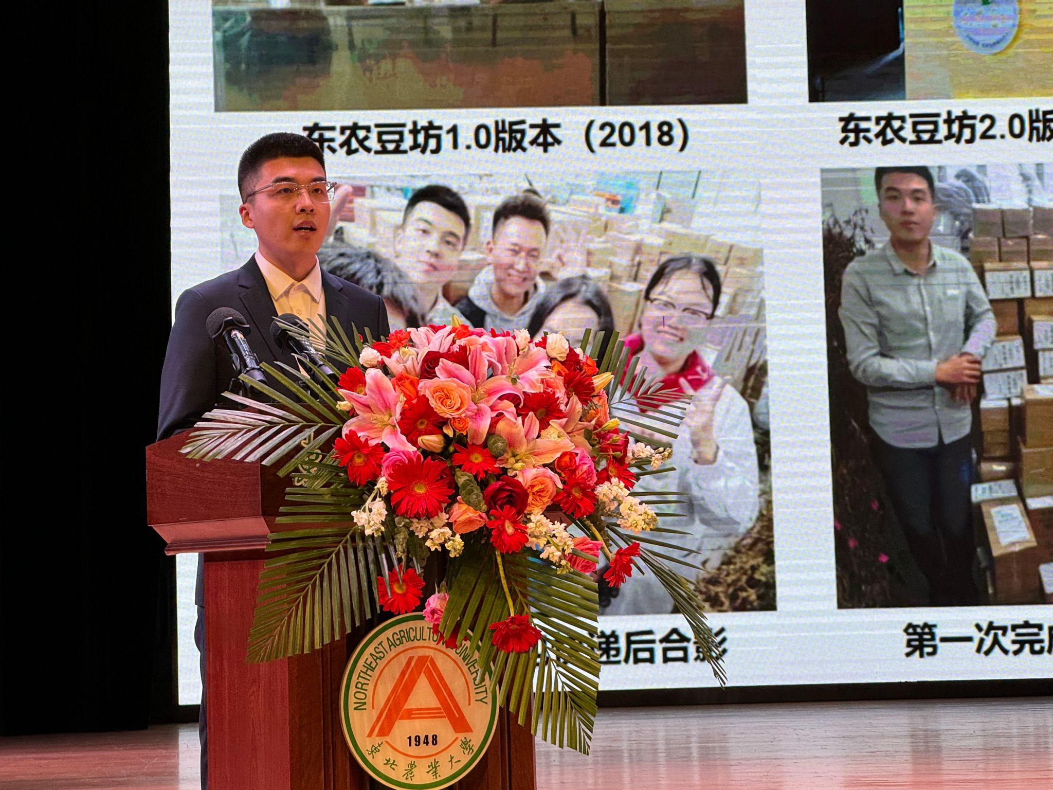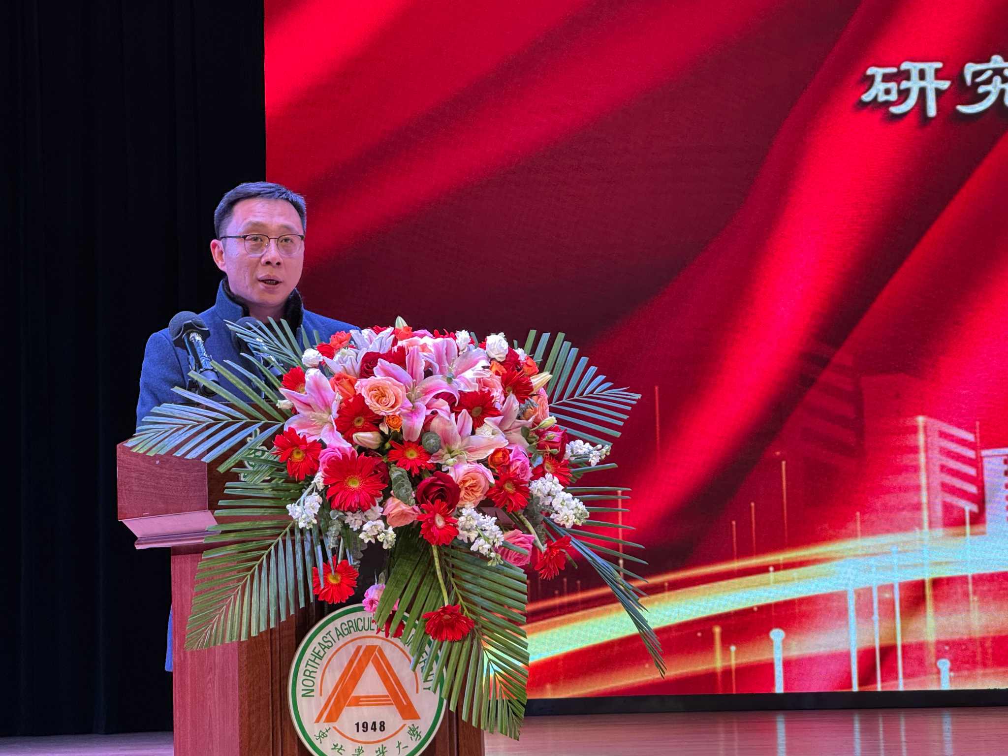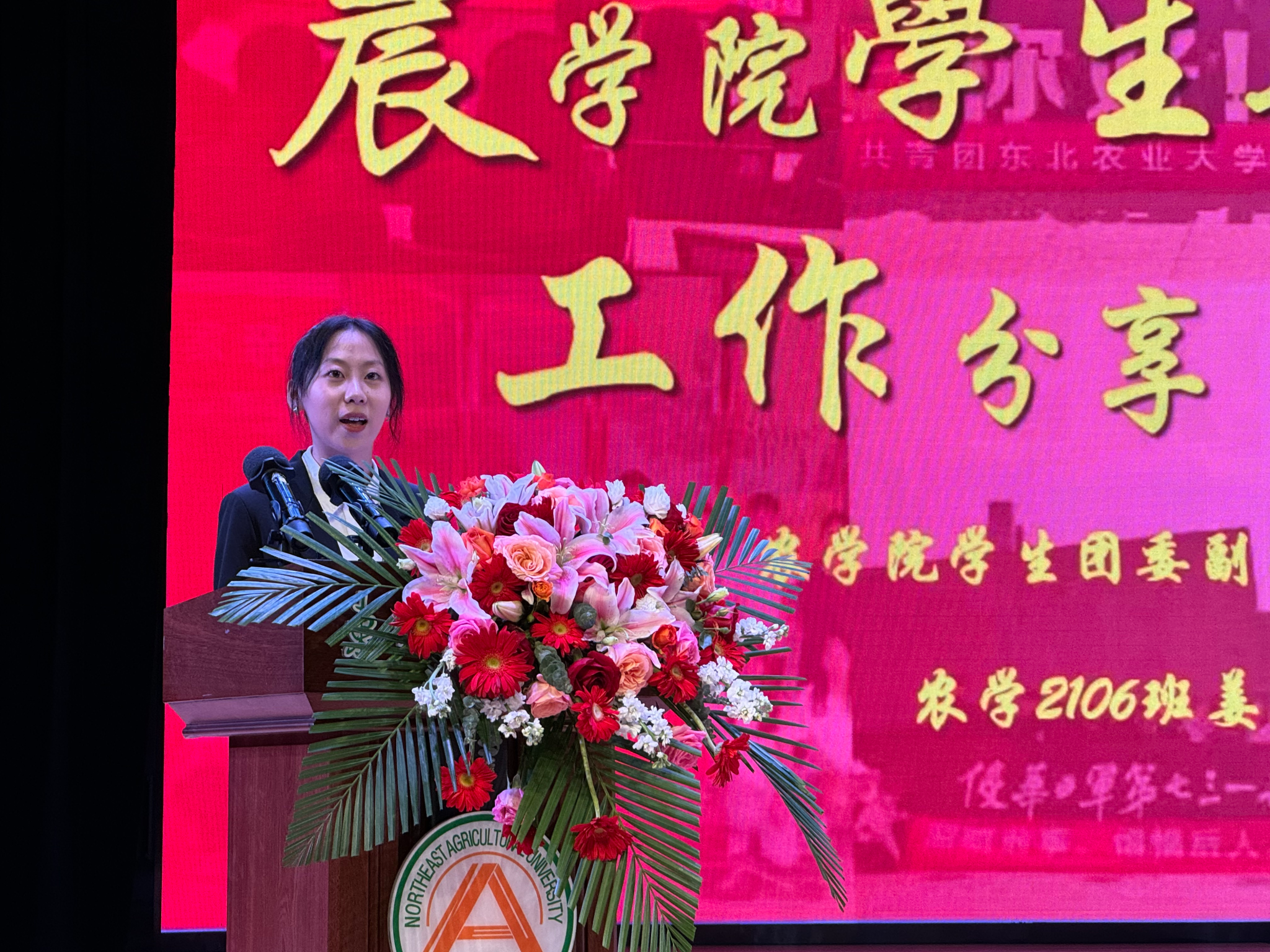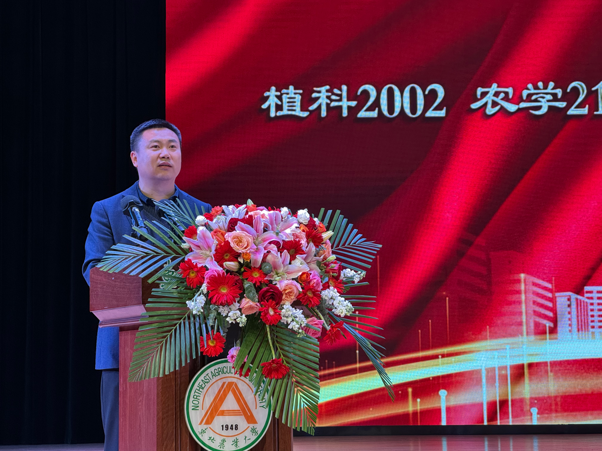 学生代表刘洋嵘珈、靳松、于童、姜苏桓发言,他们从科研、实践、创新等方面进行了经验分享,表示作为新时代农学学子,要砥砺深耕、学农爱农、在奉献三农中践行人生理想,在矢志奋斗中谱写农学学子的青春之歌。