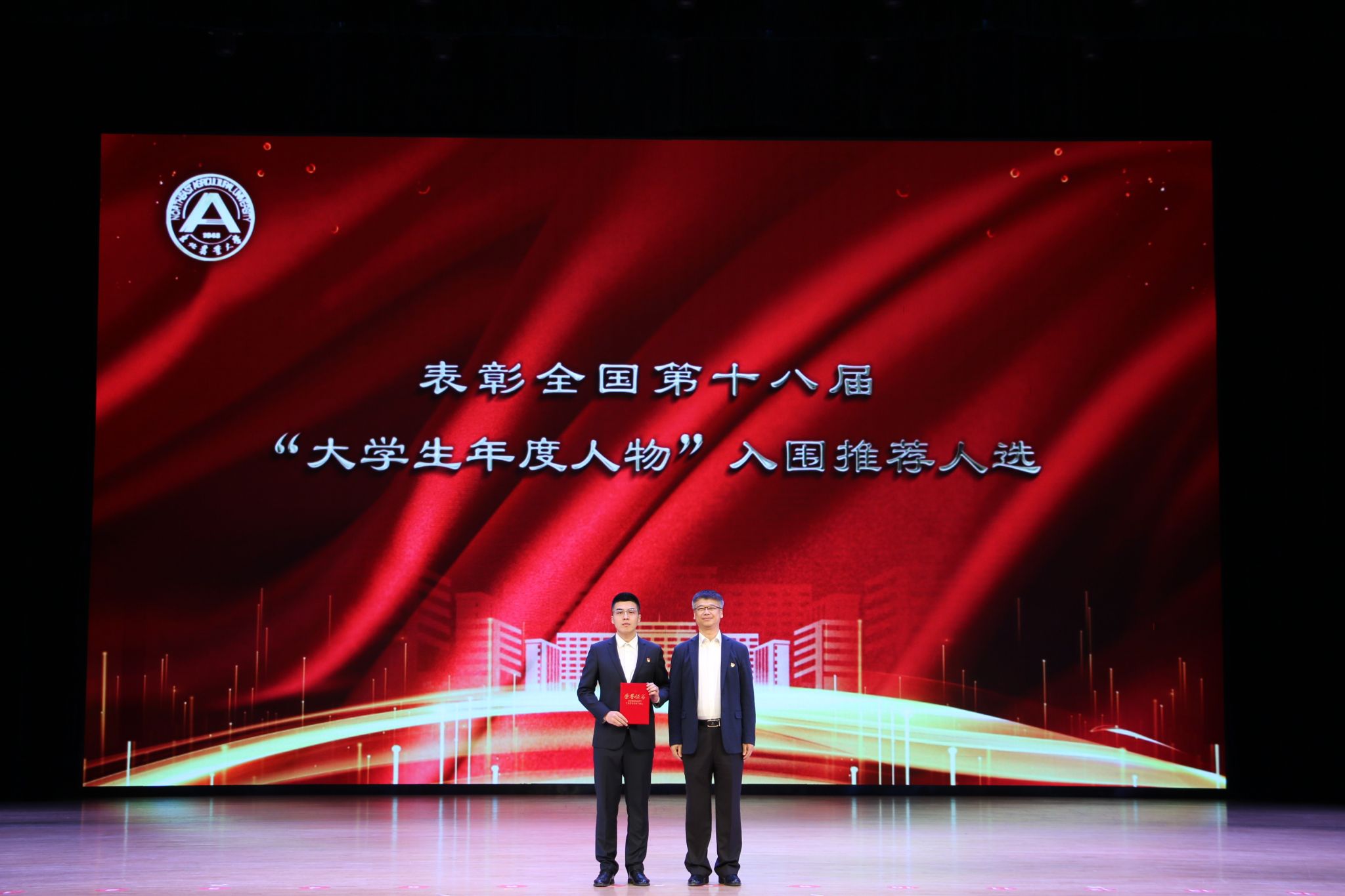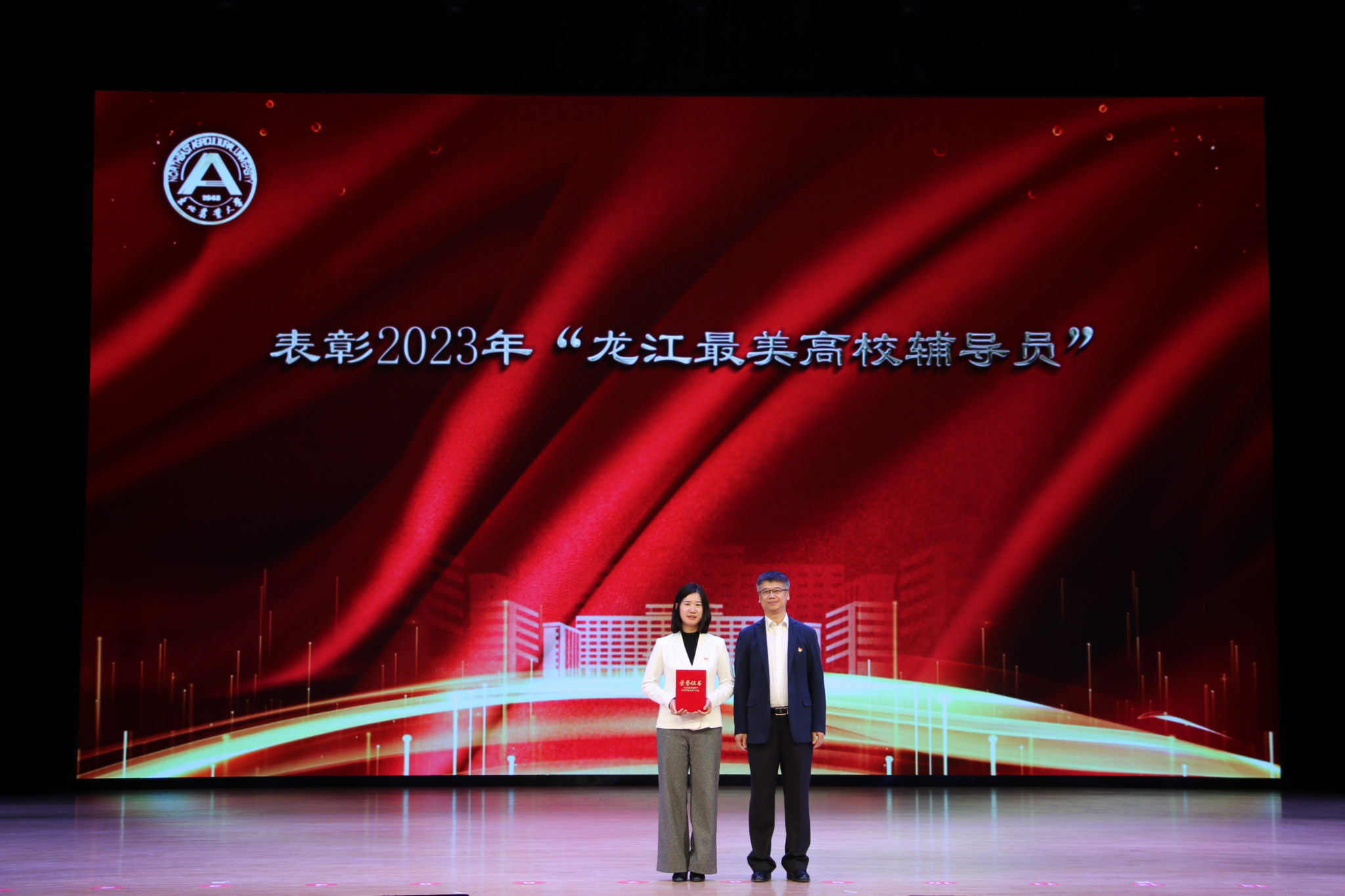 李晓书宣读《关于表彰2023年“龙江最美高校辅导员”、全国第十八届“大学生年度人物”入围推荐人选的决定》,并为获奖师生颁奖。