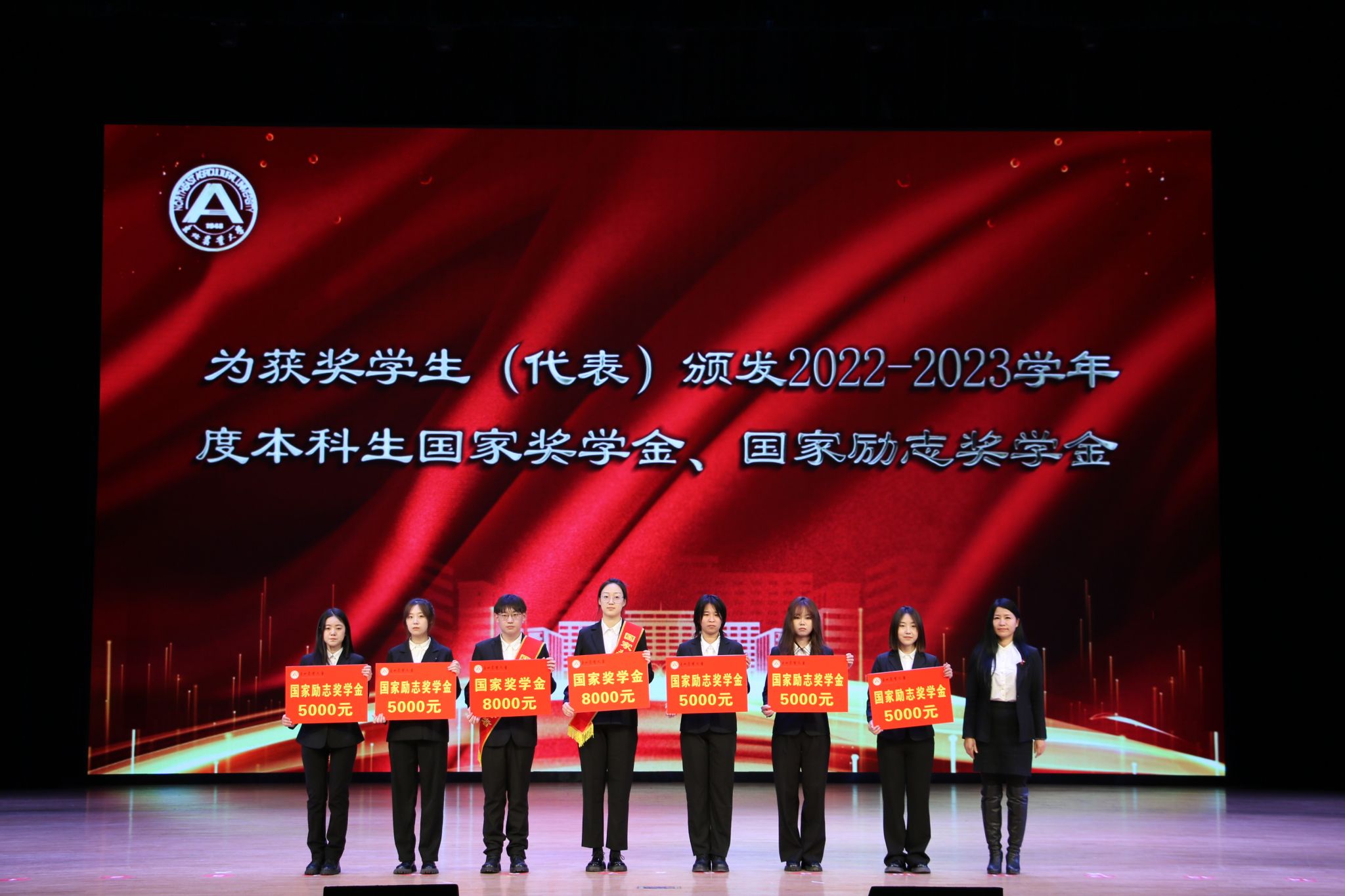 宋跃芬宣读《关于颁发2022—2023学年度本科生国家奖学金、国家励志奖学金的决定》,并为获奖学生颁奖。