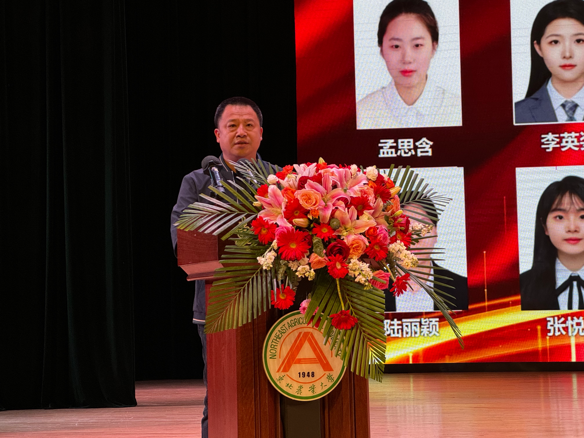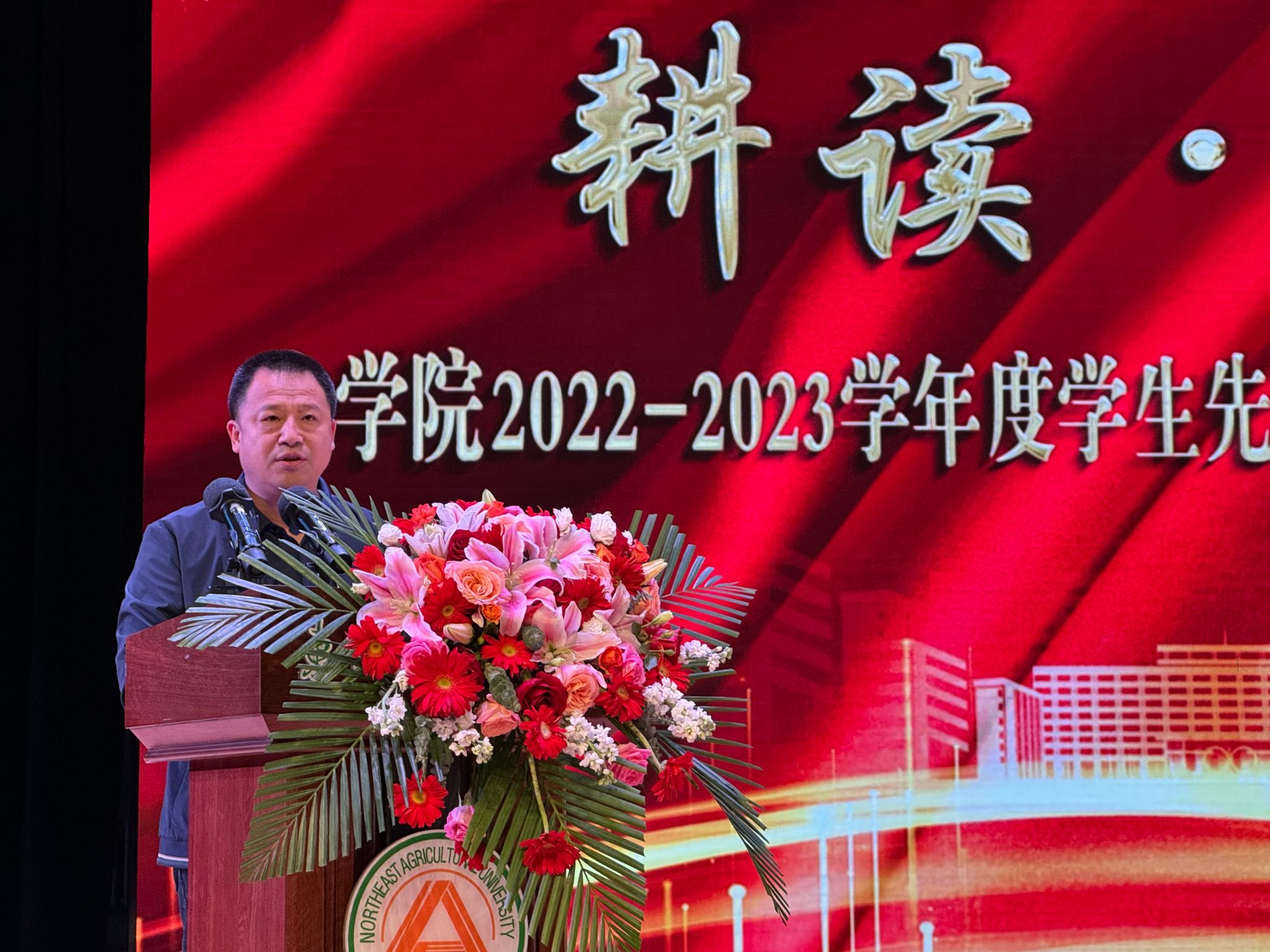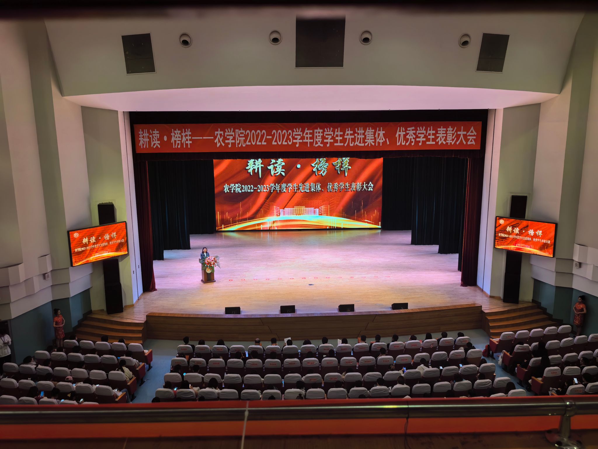 为深入落实教育部《加强和改进涉农高校耕读教育工作方案》,坚持不懈用习近平新时代中国特色社会主义思想铸魂育人,全面贯彻校党委书记李长生在人民日报署名文章《把耕与读传下去》中的论述要求,培养富有知农爱农情怀、强农兴农本领的新型农业人才,表彰先进,传递榜样力量,农学院2022-2023学年度学生先进集体、优秀学生表彰大会于3月25日在音乐厅隆重举行。大北农集团北京丰度高科种业有限公司东北平台管理部主管杜蕊、大北农集团北京丰度高科种业有限公司东北平台黑龙江区销管主管张月、黑龙江普兰种业有限公司总经理吕恩泉、校友办公室主任车可舒、学生工作部(学生处、武装部)部(处)长于兴业、招生就业处处长宋跃芬、农学院领导班子、各支部书记、系主任、全体辅导员、新生班主任参加表彰大会。本次大会由农学院党委副书记张华英主持。