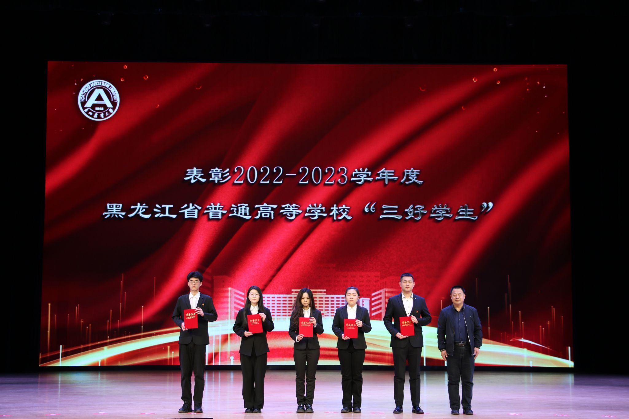 陈庆山宣读《关于表彰2023年黑龙江省普通高等学校“三好学生”的决定》,并为获奖学生颁奖。