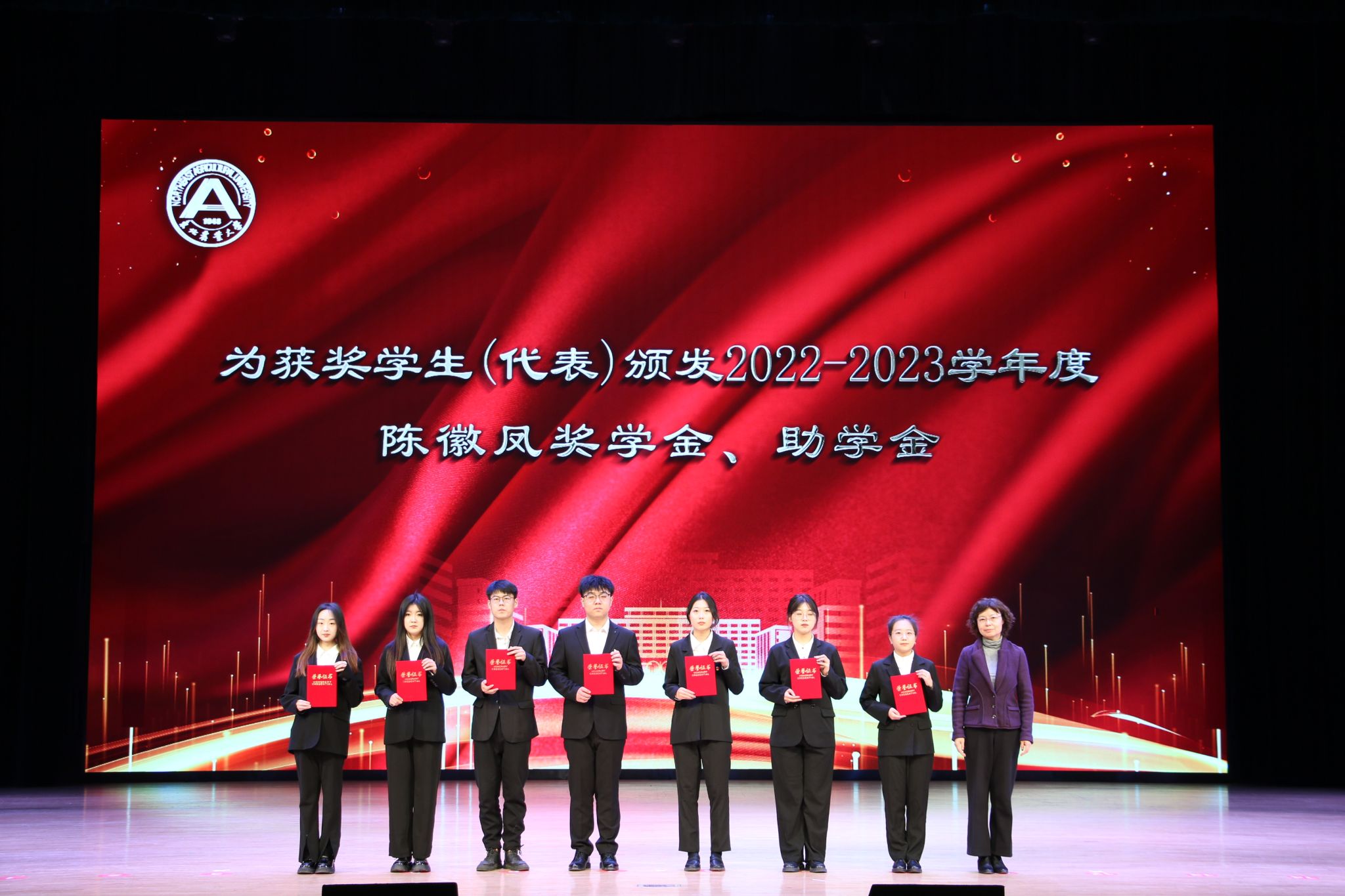 车可舒宣读《关于表彰2022-2023年度陈徽凤奖学金、助学金、奖教金的决定》,并为获奖学生颁奖。