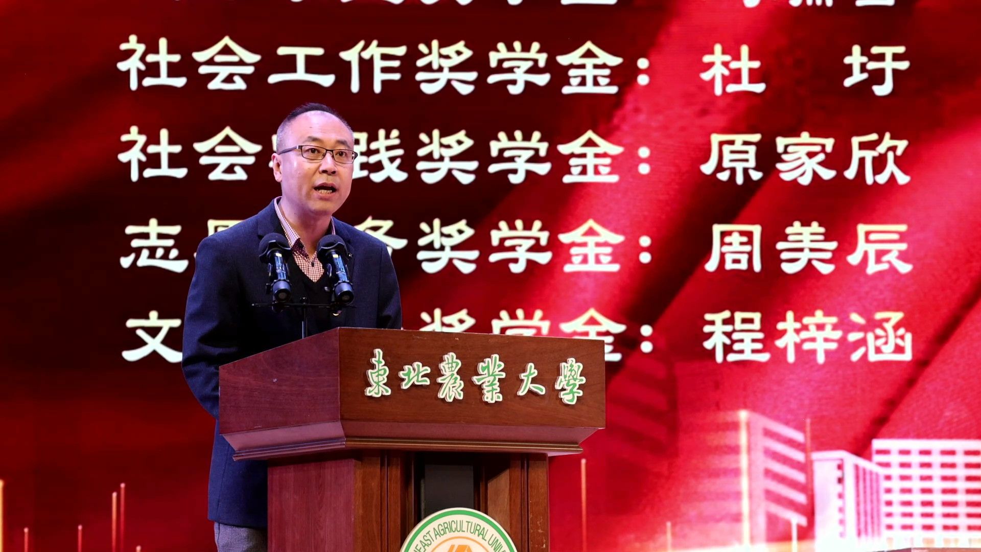 刘双奇宣读《关于颁发2022—2023学年度本科生国家奖学金、国家励志奖学金的决定》