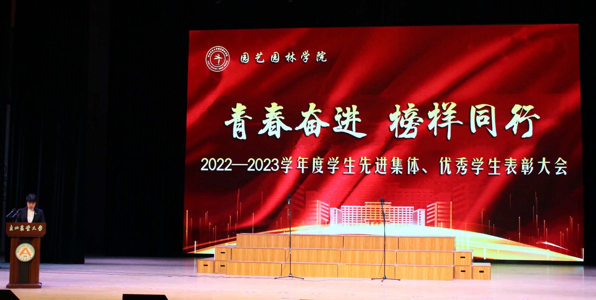 3月24日下午,园艺园林学院在音乐厅举行“青春奋进 榜样同行”2022-2023学年度学生先进集体、优秀学生表彰大会。学校学生工作部(处)部(处)长于兴业、学生工作部(处)副部(处)长刘双奇、学院全体领导班子成员、部分教师代表、全体辅导员、本科生及研究生共计1000余人参加表彰大会,大会由园艺园林学院党委副书记杨楠主持。