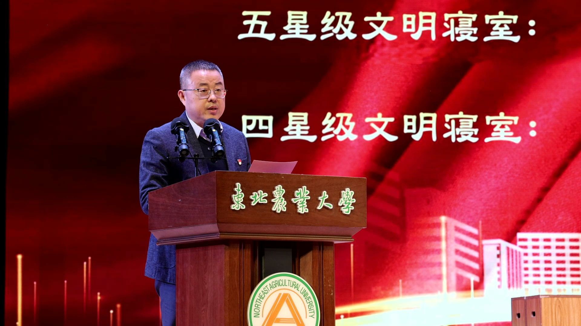 秦栋宣读《关于表彰2022—2023学年度星级文明寝室的决定》