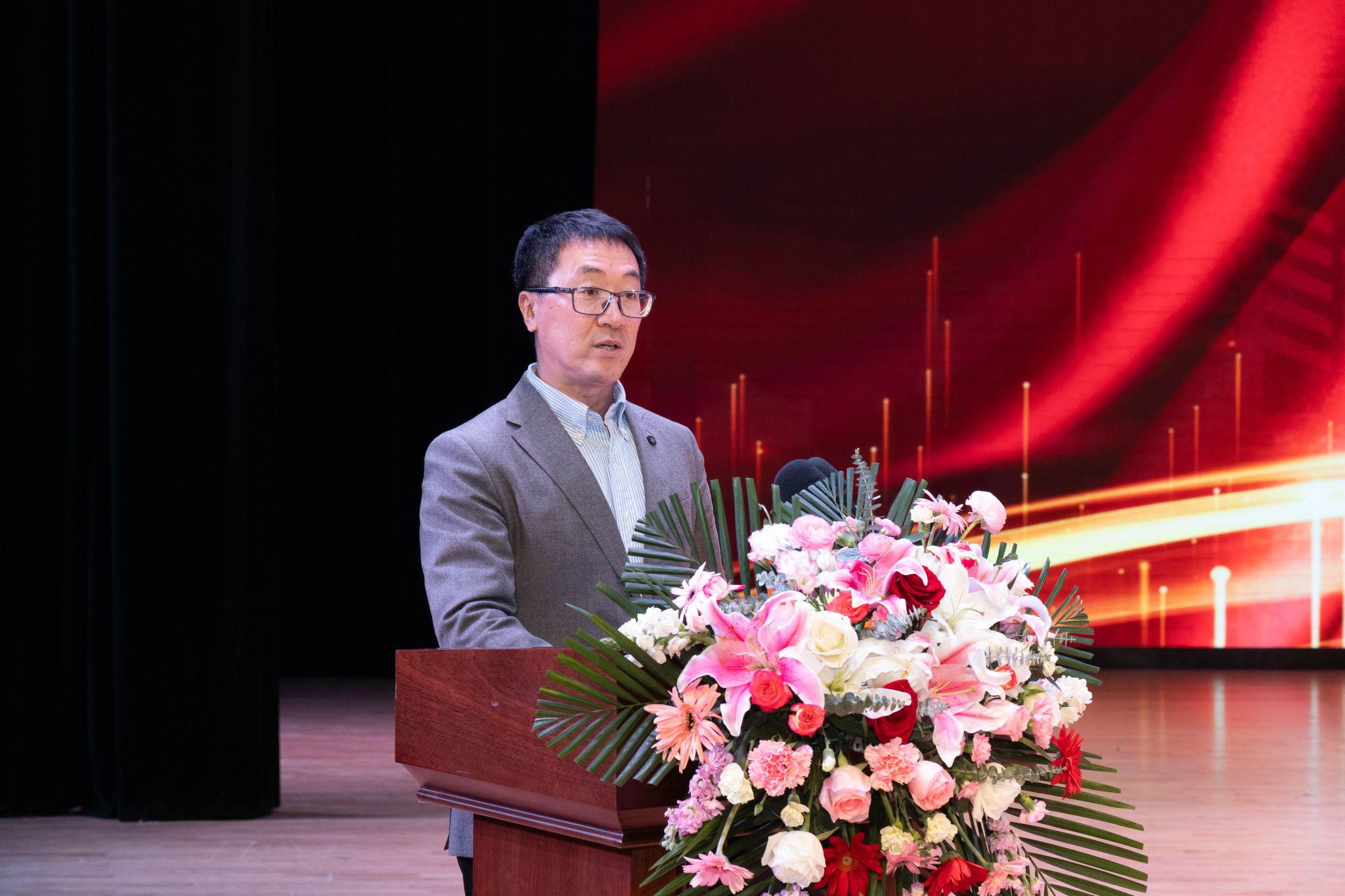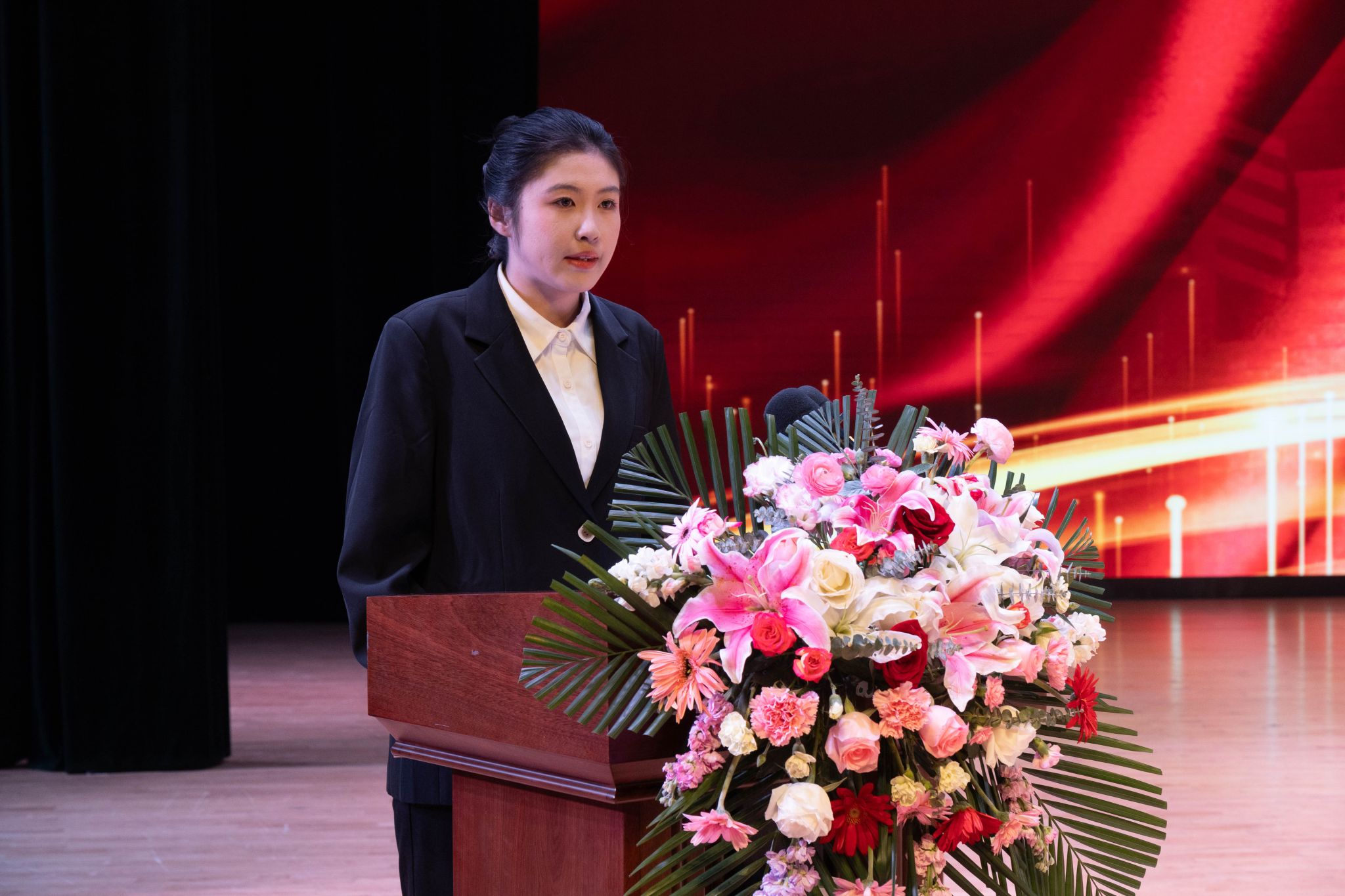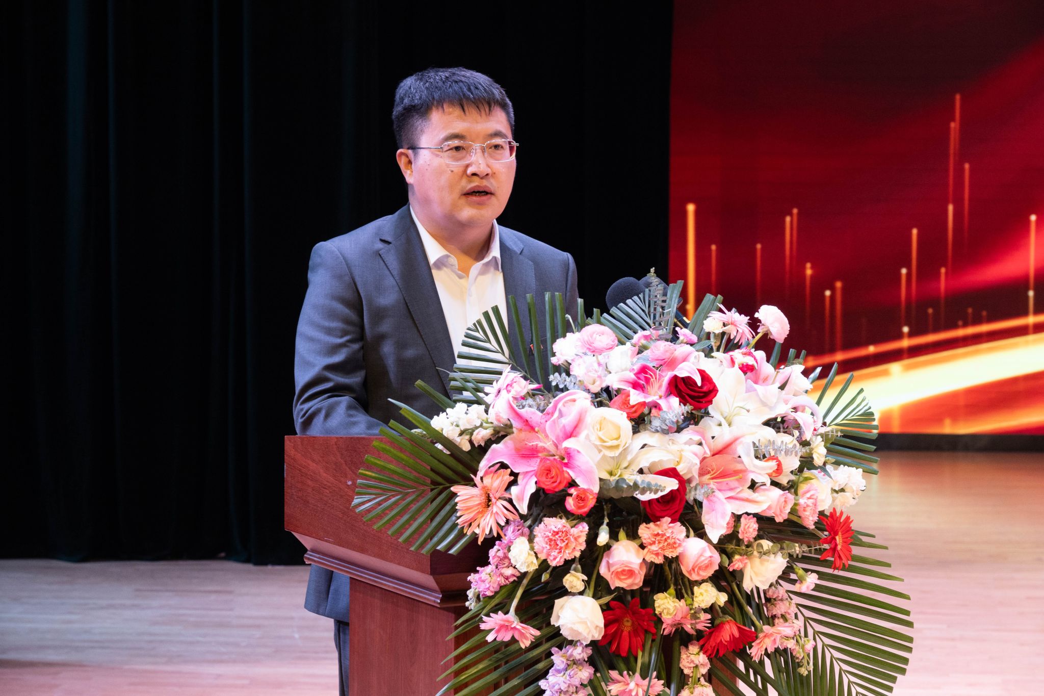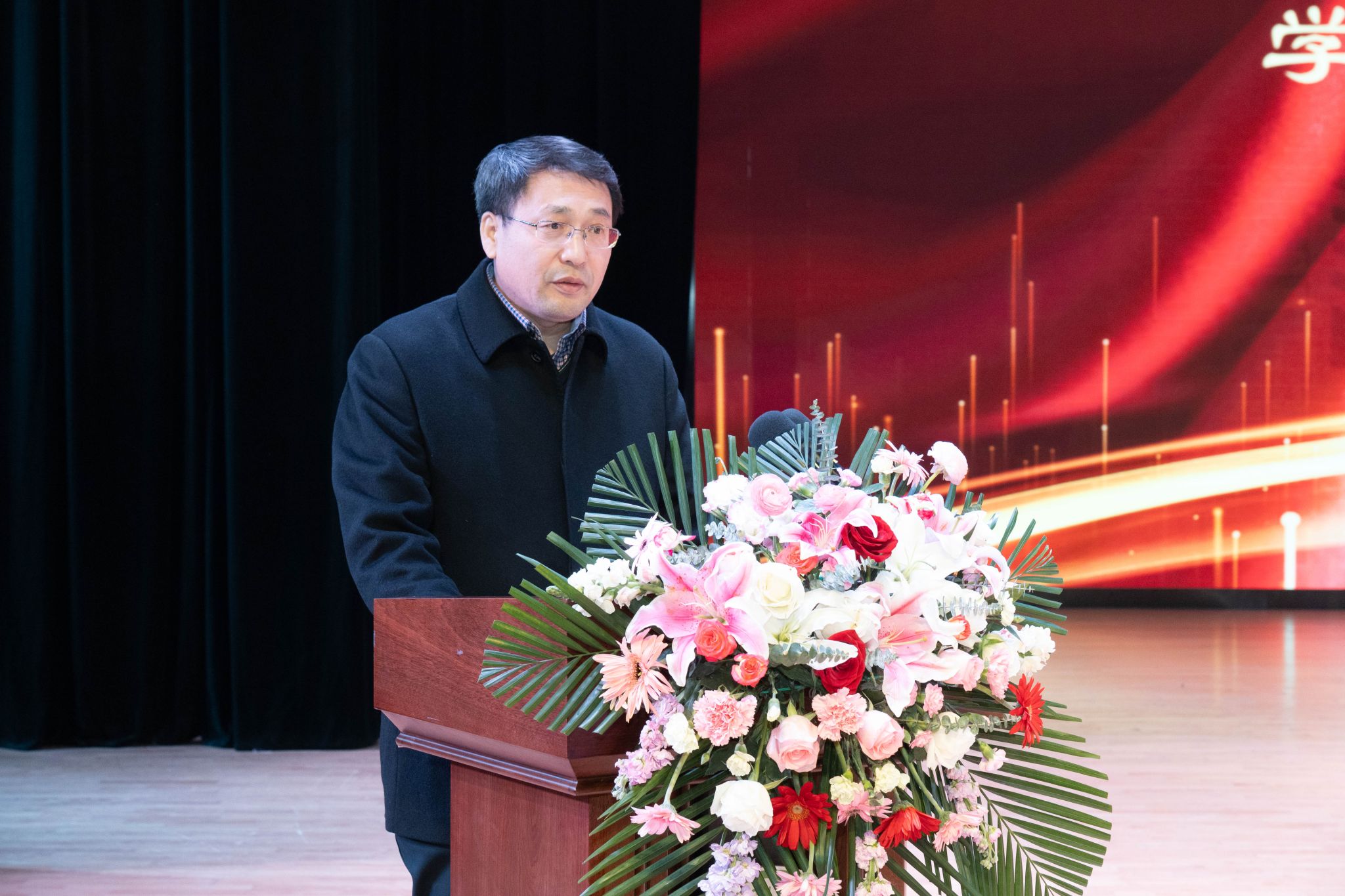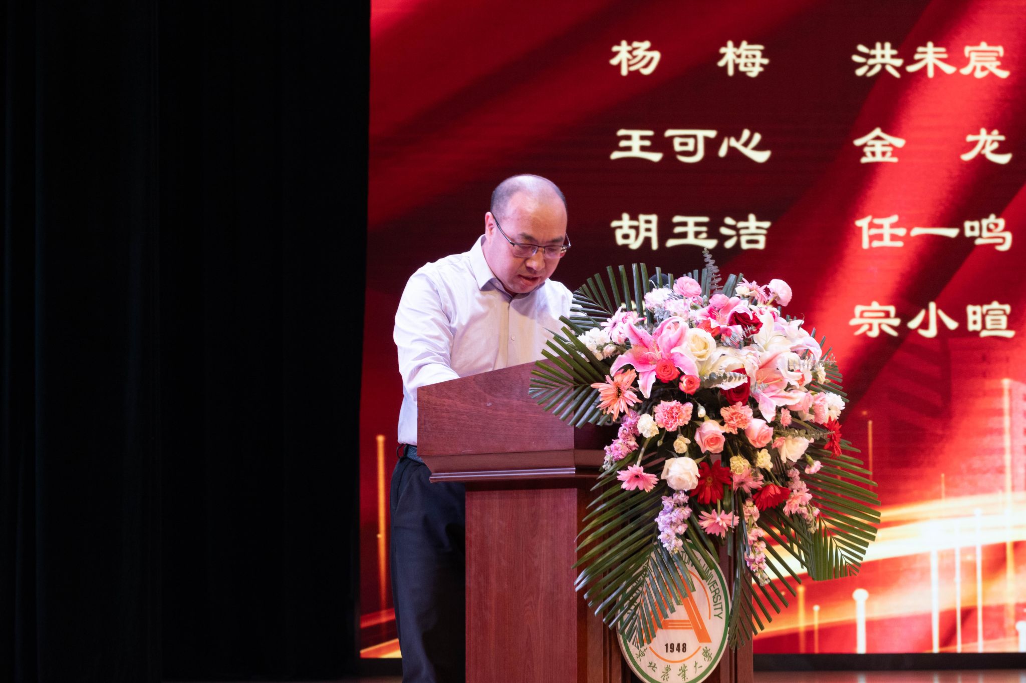为全面贯彻落实立德树人根本任务,进一步发挥先进典型的示范引领作用,弘扬优良学风,讲好榜样故事,激发学生“当好主人翁、建功新时代”的奋斗热情,3月26日,动物科学技术学院在音乐厅隆重举行“博学笃思树学风,履践致远铸卓越”2022-2023学年度学生先进集体、优秀学生表彰大会。学校学生工作部(处)部(处)长于兴业,团委书记李卡,招生就业处处长宋跃芬,动物科学技术学院领导班子,全体辅导员级本硕博各年级共计1000余名学生参加大会。会议还特别邀请到大北农食品集团高级副总裁高安详,大北农猪饲料集团黑龙江区创业人才中心经理唐赛男,大北农食品集团创业人才中心经理王灿。大会由学院党委副书记焦阳主持。会议同步进行线上直播。