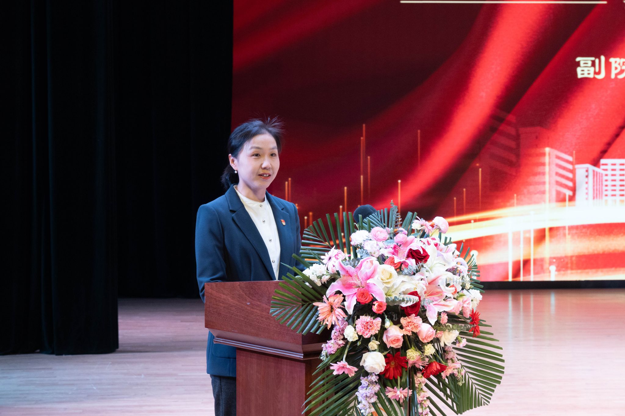 宋跃芬宣读《关于颁发 2022-2023学年度本科生国家奖学金、国家励志奖学金的决定》并为获奖学生颁奖