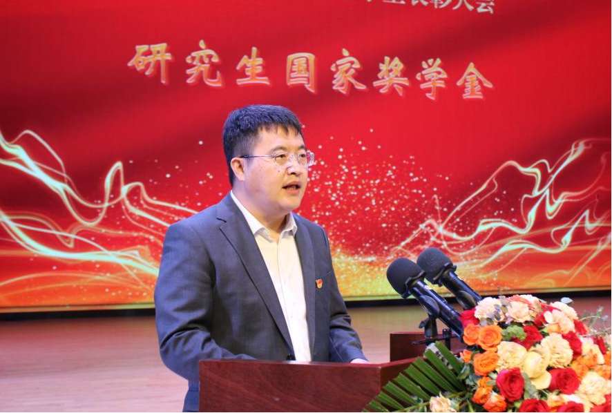 于兴业宣读《关于颁发2022—2023学年度本科生国家奖学金、国家励志奖学金的决定》《关于颁发2023年研究生国家奖学金的决定》并颁奖