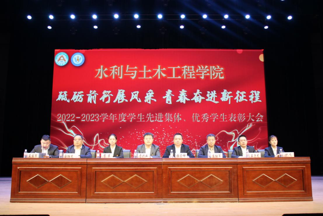 为全面贯彻落实立德树人根本任务,进一步扩大先优表彰的覆盖面,弘扬“爱校如家,当好主人翁”精神,在学生群体中营造先锋示范、榜样引领的良好氛围,3月28日,水利与土木工程学院在音乐厅召开“砥砺前行展风采,青春奋进新征程”2022-2023学年度学生先进集体、优秀学生表彰大会。学校学生工作部(处)长于兴业,水利与土木工程学院党委书记张索坤、院长李茉、党委副书记翟继军、副院长刘继龙、王子龙,各专业教师代表、全体辅导员及全体本科生和研究生出席大会。大会由学院副处级辅导员王国军主持。