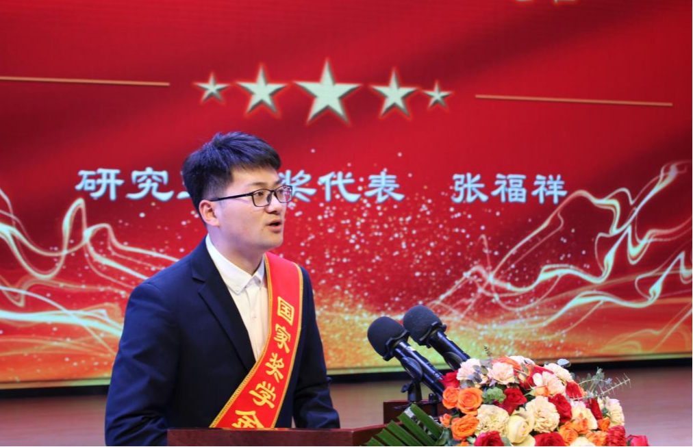 研究生国家奖学金获得者、农业水土工程学科2021级博士研究生张福祥代表研究生受表彰学生发言。他以自己在东农水利九年来的治学阅历与心得漫谈为基础,号召同学们以校风为指引、以院训为勉励,奋发有为、砥砺前行,做“爱校如家”“建功三农”的代言人。