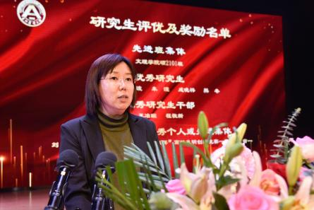 许晶宣读《关于表彰2022-2023学年度研究生先进班集体、优秀研究生、优秀研究生干部及省级以上优秀个人的决定》
