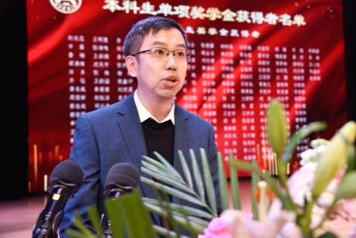 吴秋峰宣读《关于颁发2022—2023学年度本科生单项奖学金的决定》